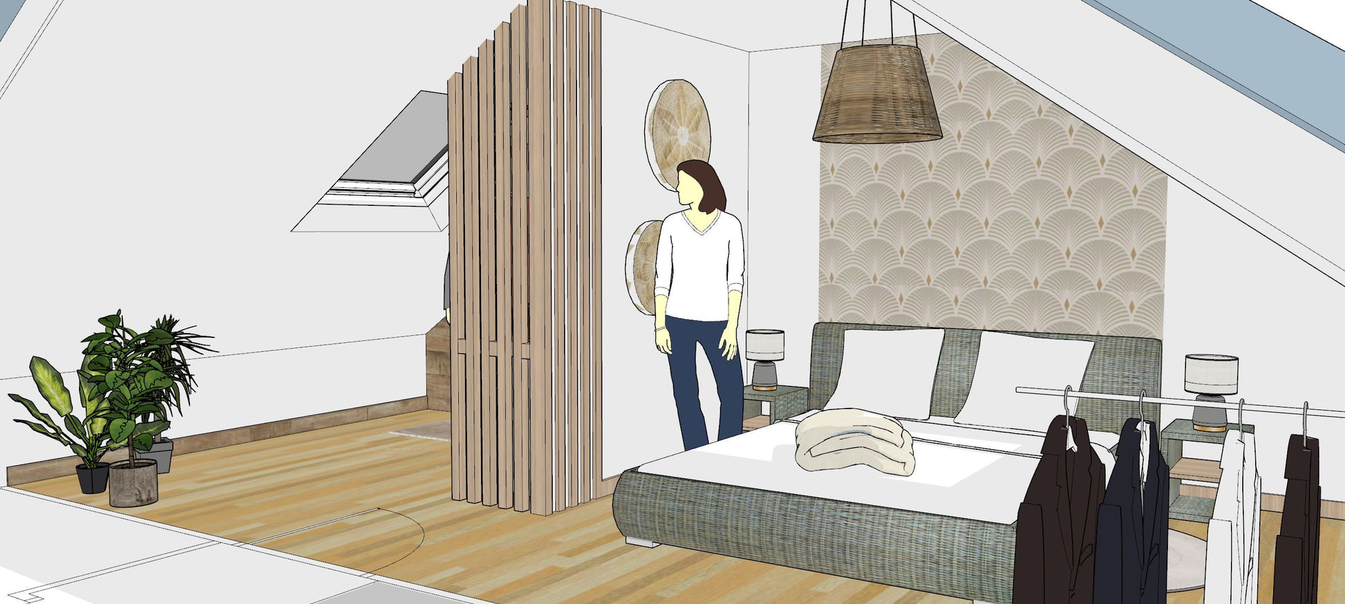 Proposition d’aménagement et de décoration d’une suite parentale dans un comble
