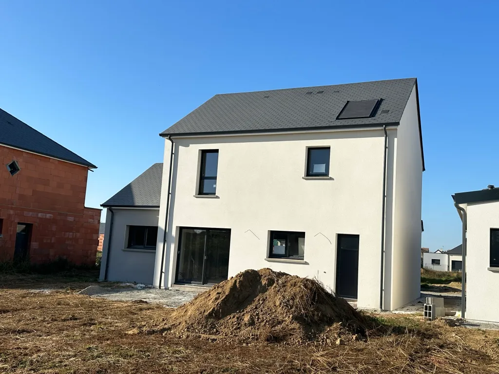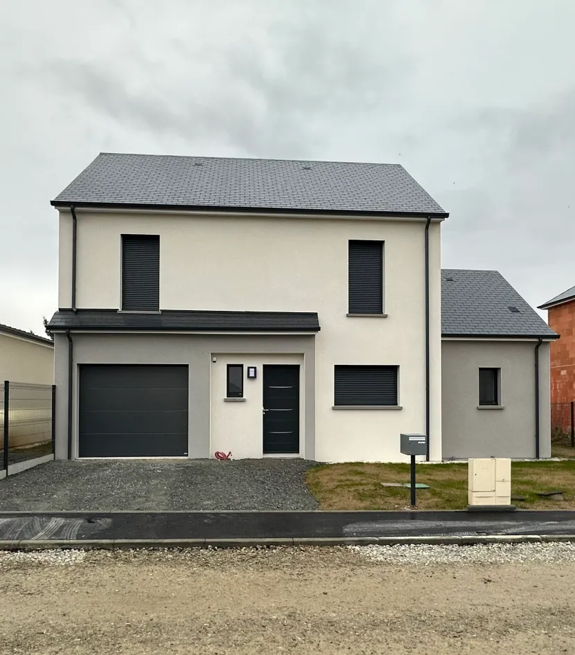 Ce projet de construction d’une maison de 119m² allie charme traditionnel et performance énergétique. La toiture en ardoise Kergoat confère à cette réalisation une élégance intemporelle, parfaitement intégrée au paysage sarthois.
