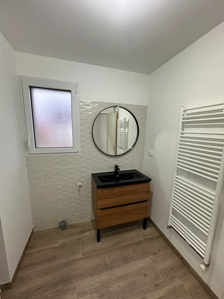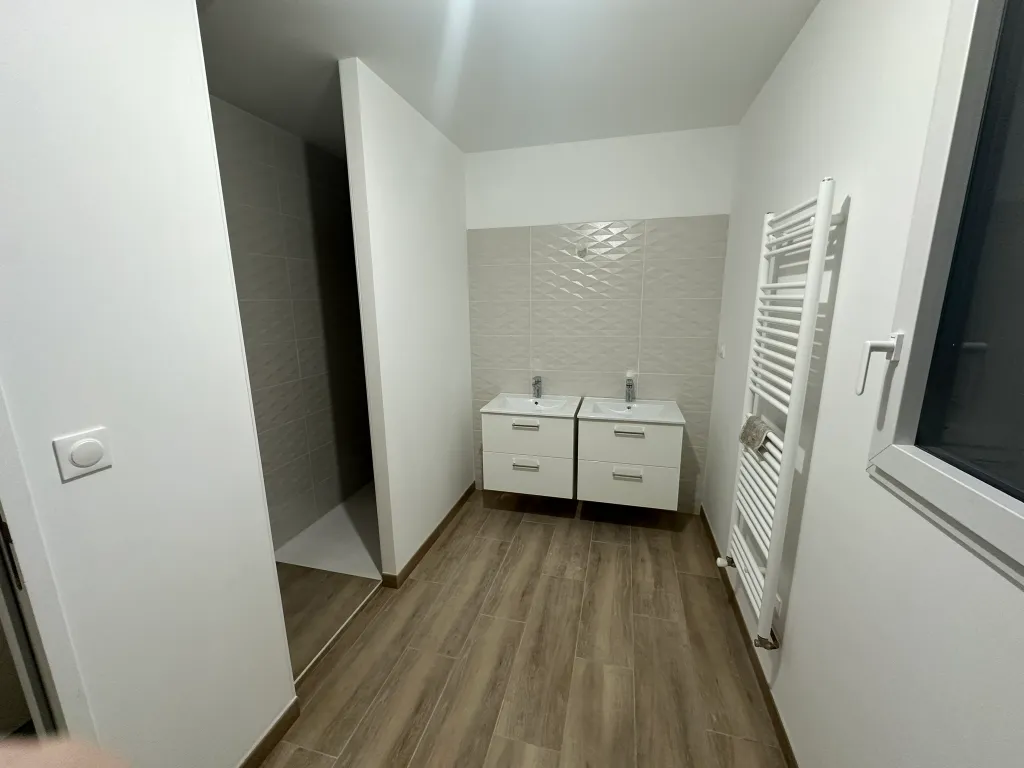 garage - Étage — Trois chambres de 13m², salle de bain de 8,45m² avec baignoire et douche, grenier de 12m² pour le rangement