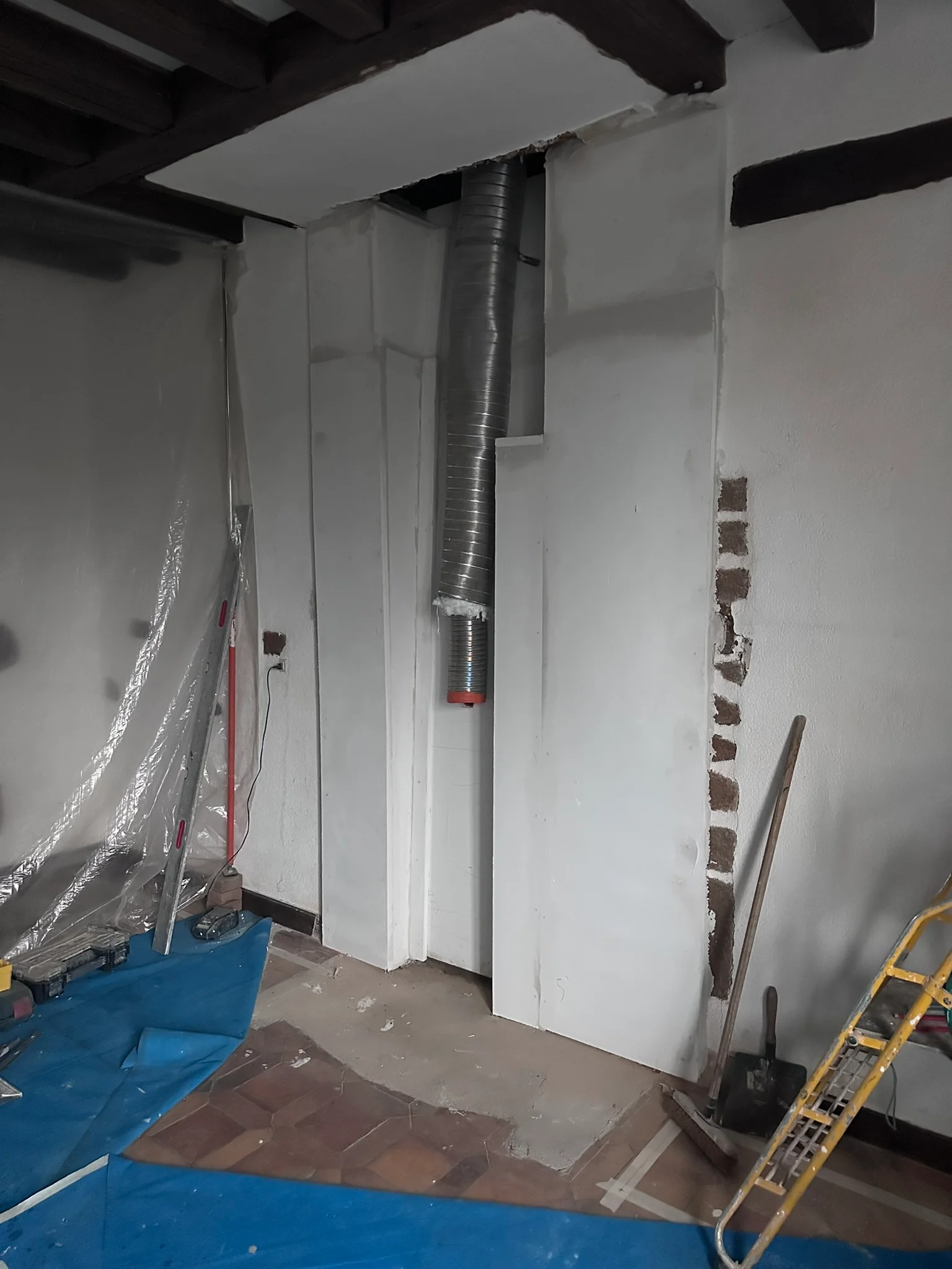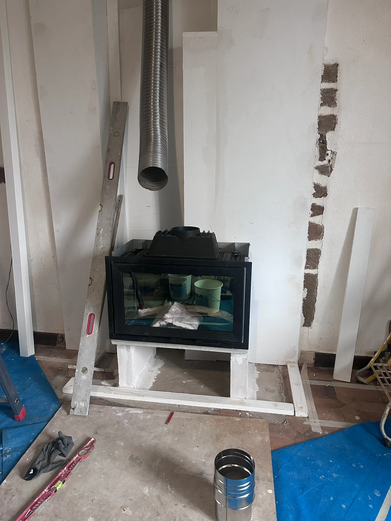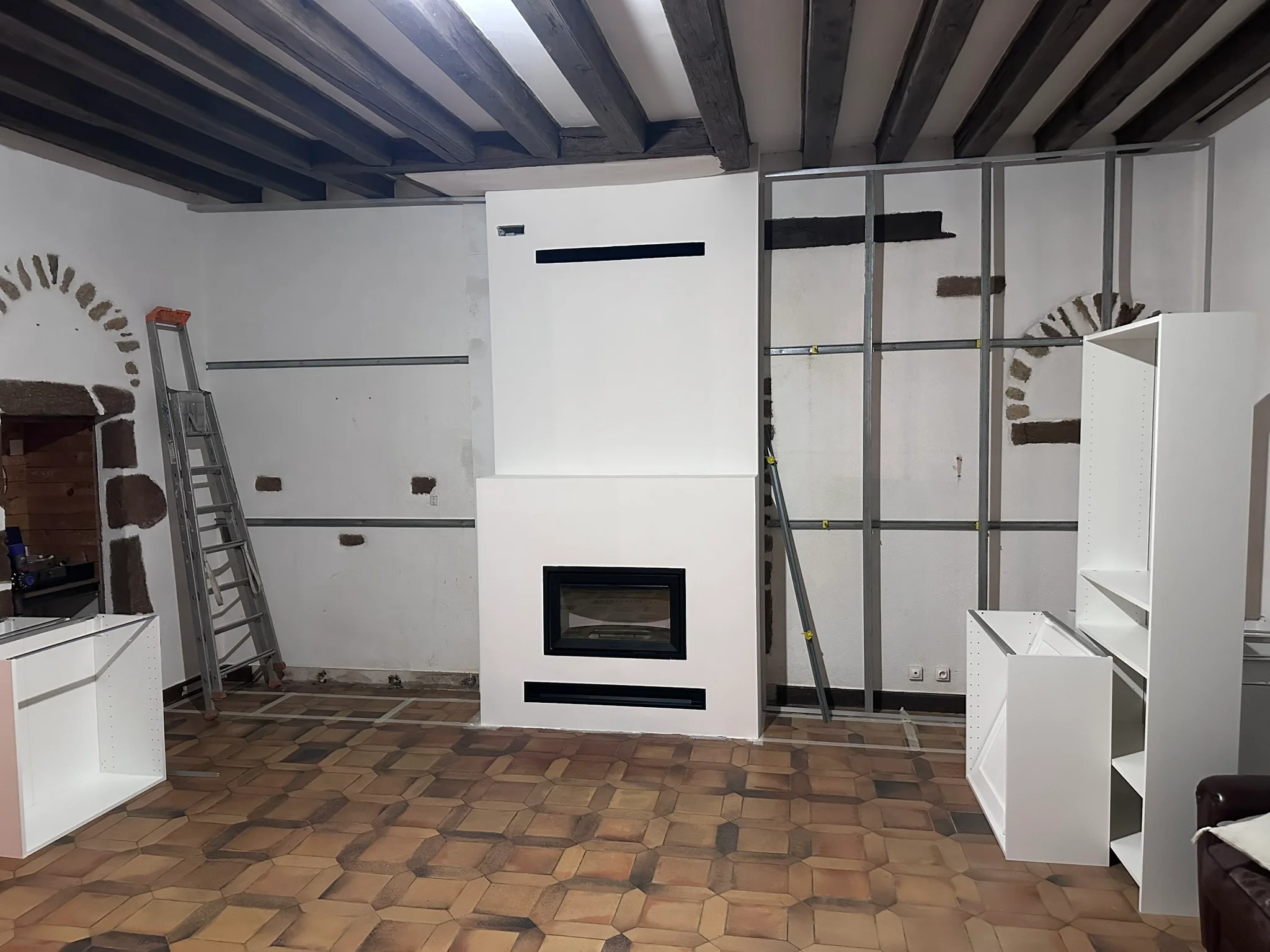 - Modernisation de la cheminée — Nouvel habillage et optimisation du foyer pour un rendu contemporain